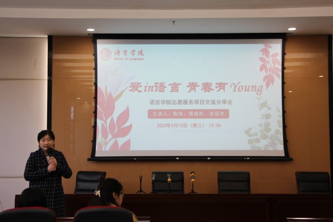 为进一步推动志愿服务工作制度化、项目化发展,提升项目影响力,3月15日下午,语言学院组织开展志愿服务项目交流分享会。会议由学院党总支副书记张冬冬主持,志愿服务项目代表陈悦、蔡依彤、狄筱悠主讲,语言学院学生积极参加。