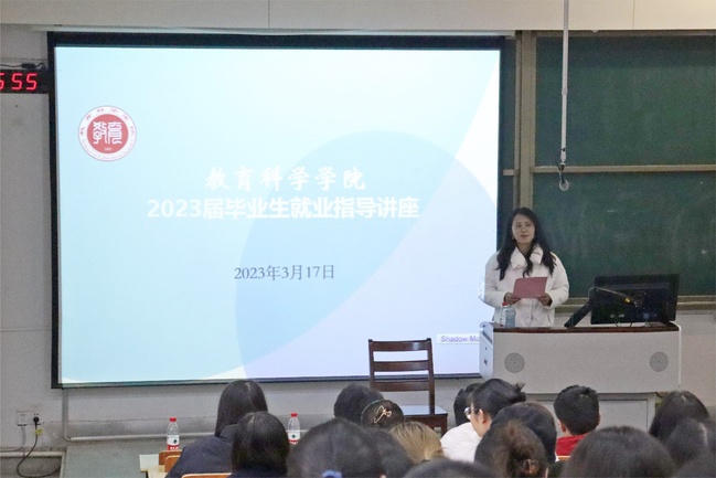 为进一步推动教育科学学院2023届毕业生就业指导工作,帮助毕业生了解当前就业形势,开拓就业视野,2023年3月17日下午,教育科学学院邀请江苏省大学生核心就业能力提升专家、江苏省教育厅大学生创新创业指导专家郭建勇老师,在栖霞校区博韵楼为学院2023届本科毕业生开展就业指导讲座。此次讲座由刘智慧老师主持,教育科学学院2023届全体毕业生积极参与。
