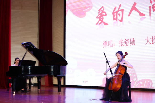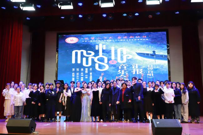 这是一场礼赞二十大的音乐会,也是一节音乐思政课。音乐是表达,思想才是引领,是底色。将课程思政元素融入音乐课程教学中,音乐思政课将理论宣讲与身临其境融为一体,在一首首经典的音乐作品中,在学生们的自弹自唱演绎中,让音乐思政课不仅有深度、更有温度,引导同学们在音乐中穿梭于当年的激荡岁月,振奋起民族复兴的伟大精神,厚植爱国情怀,更加坚定“青春之我,为国之大者绽放”的理想志向。