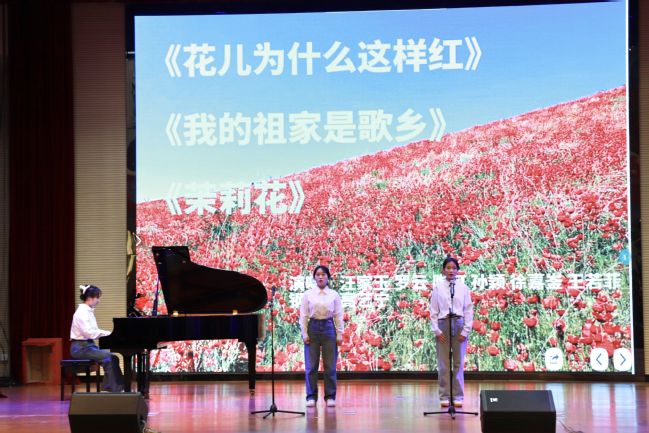 本次音乐会,由该院孙莹老师指导,分为“四季之声”“家国之情”“信仰之光”三个篇章进行汇报。第一篇章是“四季之声”,每一部分以一个季节为灵感,用音乐演绎大自然的场景。四季更替岁月悠,千古不朽爱国情,一首《四季歌》拉开帷幕,同学们运用专业的演唱技巧深情弹唱出赞美祖国大好河山的深情。柔美的音乐流泻满室,清新悠扬的旋律让人情不自禁陶醉其中。第二篇章是“家国之情”,《什么结籽高又高》《我的祖家是歌乡》《茉莉花》等歌曲彰显了独特的中华文化魅力,用弹唱创编形式赞美各民族的幸福生活、传承中华民族传统文化。激昂的《爱我中华》将本场音乐会推向第一个高潮,大家用歌声表达了强烈的民族自豪感,用歌声歌颂民族团结,唱响时代赞歌。第三篇章“信仰之光”中,“我爱我的家乡,我的家乡是个好地方”“祖国,祖国,我爱你”“弹起我心爱的土琵琶,唱起那动人的歌谣”,同学们用一曲曲熟悉的旋律,传递对祖国的爱,表达了赤忱的中国心,一首《红星歌》,拳拳爱国心,仿佛让大家回到了记忆中的时光,深情细腻的歌声触动人心,高亢激昂的旋律催人奋进,音乐会再次推向最高潮。