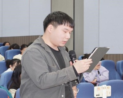 来自语言学院的包文倩同学从自身经验出发,讲述了属于她的“变形计”故事。“成功从来没有捷径,唯有课下脚踏实地学习,摒弃应试思维,方能在学业上获得成功。”“要学会感恩,在感恩中获得成长。”……包文倩同学用幽默的语言与同学们分享了她的失败经历,尽管失败令她感到社死,但她并没有灰心,而是乐观面对、更加努力,最终获得了成功。