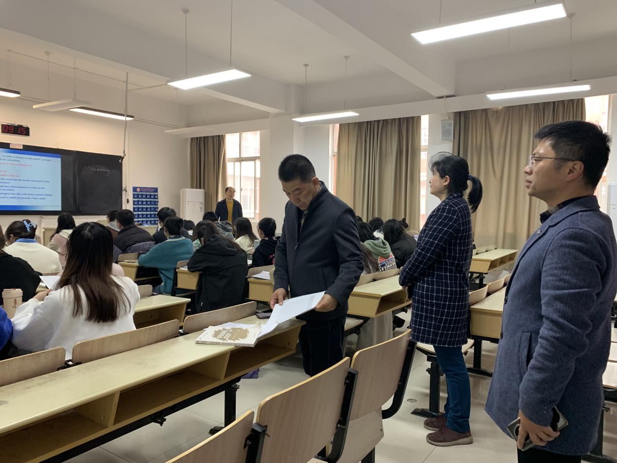 学院领导班子一行分别走进《高级英语》《中国现当代文学》等十余门课程的线下课堂开展教学秩序巡查。从教师到岗情况、教学准备情况、学生到课情况、课堂教学秩序、课堂教学管理等各方面来看,各项工作有序开展、状况良好。此次巡课听课发现,学院教学平稳有序,任课教师准时到岗,准备充分,授课认真;学生出勤率高,态度端正,积极认真;总体精神面貌较好,前排入座率较高,课堂秩序井然。
