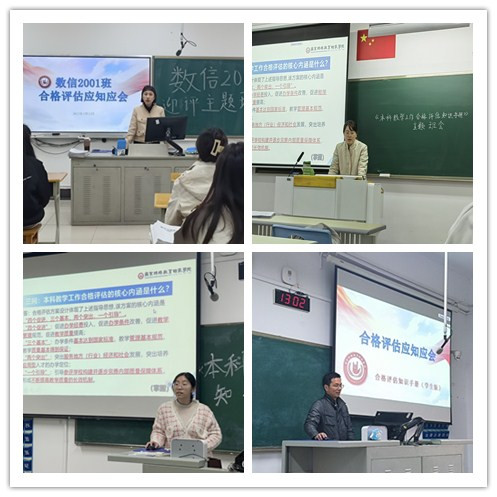为使同学们深刻理解本科教学工作合格评估的内涵,进一步明确目标,强化认识,营造“人人关心评估、人人了解评估、人人参与评估、人人都是评估对象”的浓厚迎评氛围,近日,数学与信息科学学院各班班主任主持召开学习《本科教学工作合格评估知识手册》的主题班会。