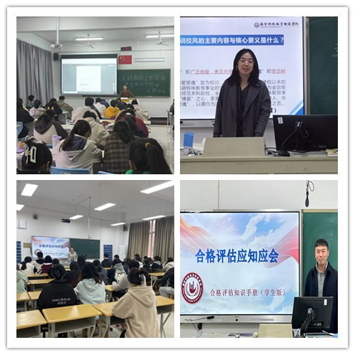 班主任老师组织同学们认真学习“合格评估知识问答17问”,要求每一名同学切实了解本科教学工作合格评估的相关知识。本科教学工作能否以优良成绩通过评审,关系到学校社会竞争力、办学水平的提升,同时也会影响到同学们的未来就业与发展。老师要求同学们树立“人人都是学校主人翁,个个都是评建受益者”的主人翁姿态,认真对待此次本科教学工作合格评估。在平时生活中,要注重文明礼仪,积极维护校园良好的交通秩序和整洁卫生的寝室环境,认真做好“三检”工作。课堂中要认真听讲,积极参加学科竞赛及各级各类文体活动,一起营造朝气蓬勃、健康向上的良好精神风貌。