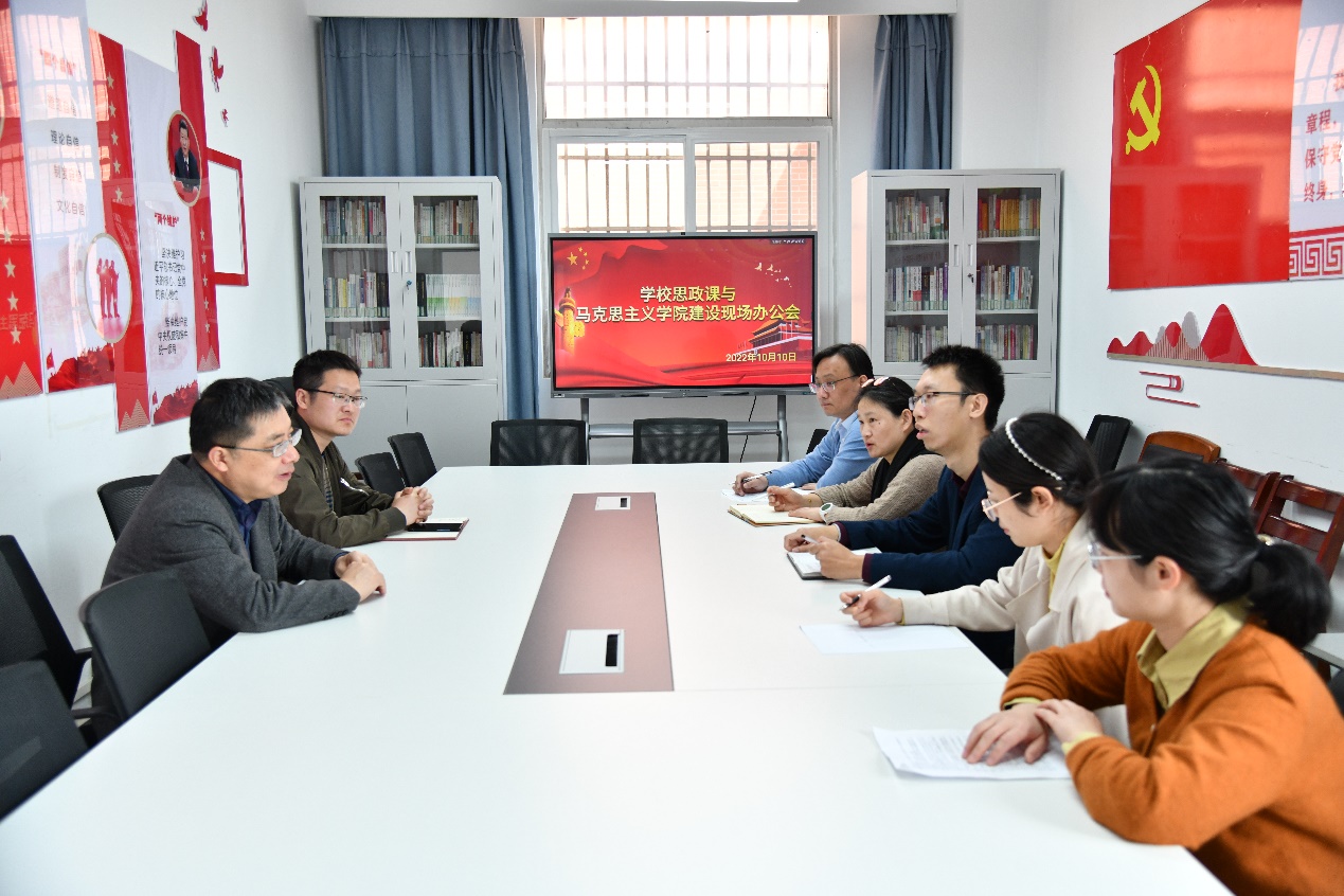 10月10日上午,党委副书记、校长王立新到马克思主义学院召开现场办公会,专题研究思政课和马克思主义学院建设工作。党委宣传部同志、校长办公室负责同志、马克思主义学院负责同志及青年教师代表参加会议。