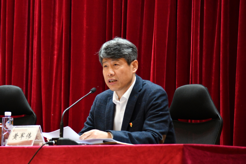 黄军伟书记最后就贯彻落实会议精神再提三点要求:一是迅速传达学习,会后各二级党组织要召开专题会议,学习传达贯彻本次会议精神,引领广大党员领导干部充分认识开展学习贯彻习近平新时代中国特色社会主义思想主题教育的意义;二是强化责任落实,各单位要准确把握主题教育工作要求,细化实化本部门具体方案,有效推进学习贯彻习近平新时代中国特色社会主义思想主题教育,确保落实各项学习任务和要求;三是做好工作结合,要学思用贯通、知信行统一,各单位要把学习贯彻习近平新时代中国特色社会主义思想主题教育与做好学校各项工作、推动高质量发展紧密结合起来,做到有机融入,相互促进,彰显主题教育成效。(文/宋宁宁 图/袁姝 审核/李丽 杨黎珍)