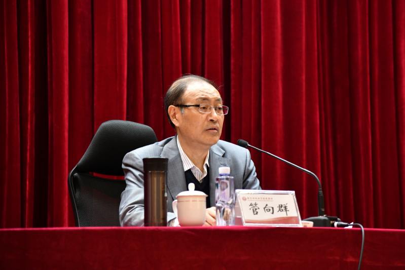 管向群组长在指导讲话指出,深入开展学习贯彻习近平新时代中国特色社会主义思想主题教育,是党中央为全面贯彻党的二十大精神、动员全党同志为完成党的中心任务而团结奋斗所作的重大部署,是深入推进新时代党的建设新的伟大工程的重大部署。他传达了中央和省委关于主题教育的部署要求,说明了省委巡回指导组的工作职责,并对我校党委高度重视主题教育给予充分肯定。就落实好主题教育的各项任务,管向群组长提出三点要求:第一,准确把握主题教育的目标要求,坚决把中央和省委的部署落到实处。要牢牢把握总要求,紧紧锚定根本任务,全面落实具体目标。第二,扎实抓好重点措施,推动主题教育高质量开展。理论学习要深学笃行,调查研究要扎实深入,推动发展要敢为善为,检视整改要真查实改。第三,坚持严实作风,确保主题教育取得实实在在的成效。领导要带头示范,要坚持开门搞教育,力戒形式主义。