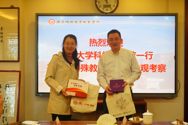 4月14日上午,清华大学科学博物馆王景、吴迪、陈雪扬、王舒畅、杨啸一行参观中国特殊教育博物馆。校党委常委、副校长吴彬江会见清华大学科学博物馆一行。中国特殊教育博物馆馆长马建强,美术与设计学院梁燕教授、郑晓副教授以及数学与信息科学学院戴玥副教授陪同参观,博物馆季瑾老师、郭永老师、郑培新老师、陈卓雅老师及学生志愿者负责接待讲解。