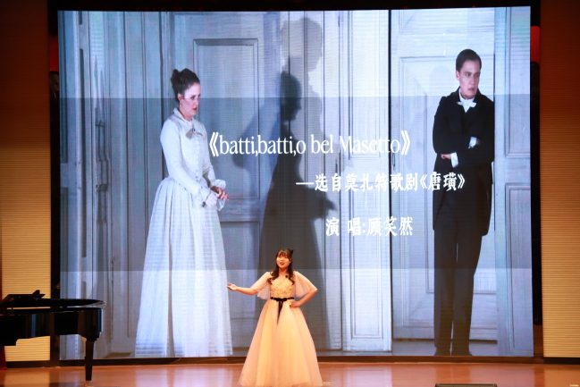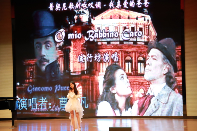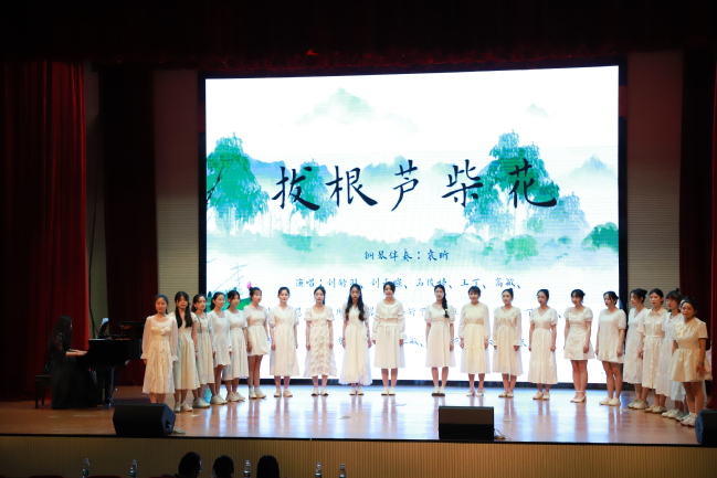 活动伊始,扬州民歌《拔根芦柴花》打开本场音乐之旅,由钱珑、仇碧影、郑舒宁、张瑄瑶等,钢琴伴奏袁昕,曲调优美,歌词朗朗上口,节奏明快,洋溢着欢乐的劳动气氛。男生独唱《歌》,浓厚的嗓音表达出自己深深的爱;长笛三重奏《卡门》,笛声优美动听,配合的天衣无缝,具有幻想、自由、奔放等特点,富有浪漫色彩;韩国艺术歌曲《迎接》,表达出静静守候所爱之人的悲切。《窃蓝》《我的美丽》以及原创歌曲《Girls‘ talk》把握青春的韵律,跟着时代脉搏,散发着独一无二的魅力;《鞭打我吧》《啊我亲爱的爸爸》两首意大利的咏叹调具有抒情意味;《再看一眼亲人》选自歌剧《沂蒙山》,是整个歌剧最重要的片段,谨以此曲向共和国的烈士们致敬;女声合唱《依恋时间》表达爱的至深、至大、至真……