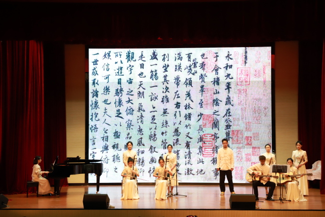 《兰亭序》“情字何解 怎落笔都不对”表达出对所爱之人的思念之情;《青花瓷》宛如一出烟雨朦胧的江南水墨山水,恰似那“自顾自美丽”的青瓷极品,洗尽铅华,古朴典雅,清新流畅。三重唱《练习》配合默契,引起台下一次又一次的掌声。《战台风》中二胡与古筝结合气势磅礴,音乐形象鲜明,成功塑造了码头工人大无畏的精神和压倒一切困难的英雄气概。手语表演《万疆》共同“唱响”爱党爱国的赤子情怀和共同心声。