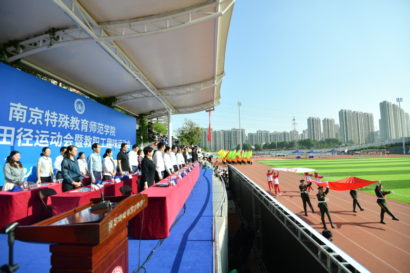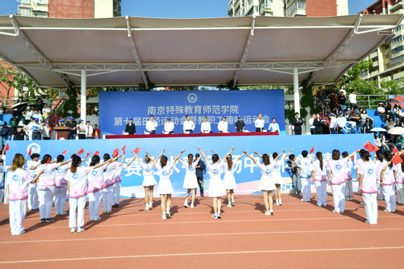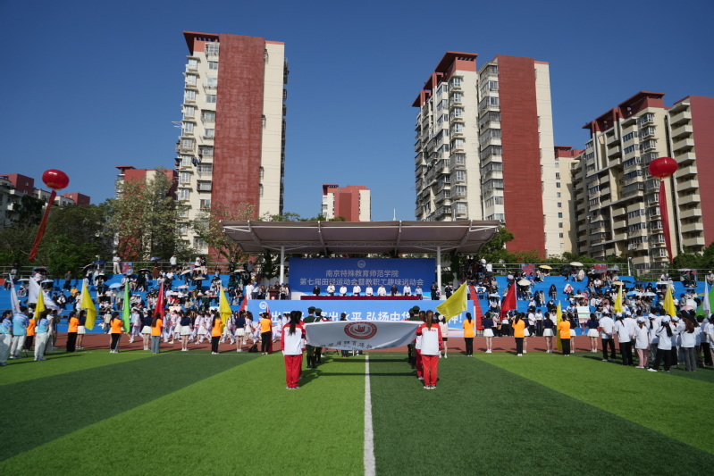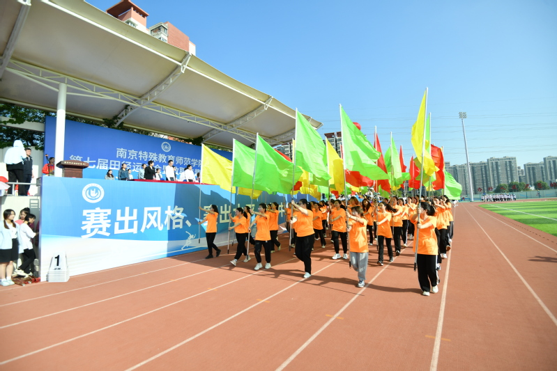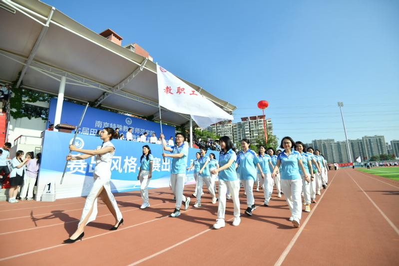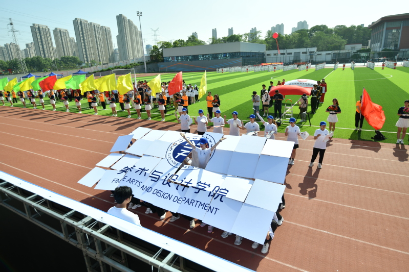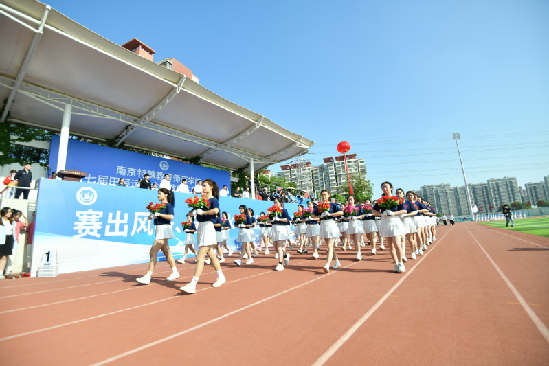 伴随着激昂的《运动员进行曲》,国旗队、彩旗队、鲜花队、裁判员方阵、各学院代表队迈着矫健的步伐依次走过主席台,各学院入场方阵的体育文化展演结合专业特色,个性鲜明、花样十足,充分体现出南特学子多才多艺、创意十足的一面。