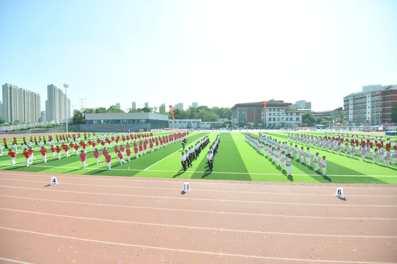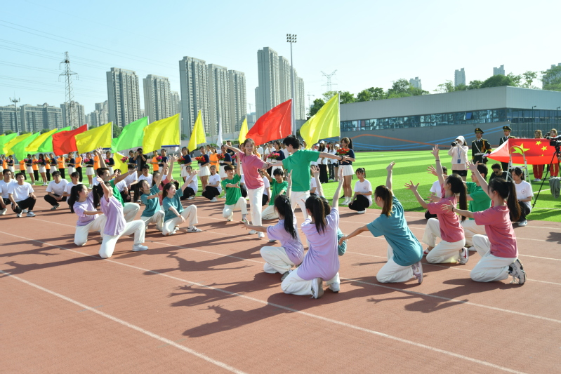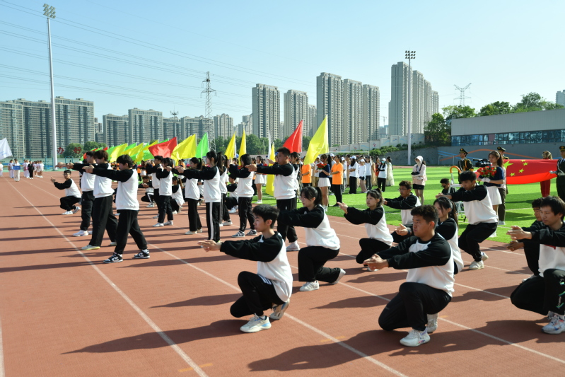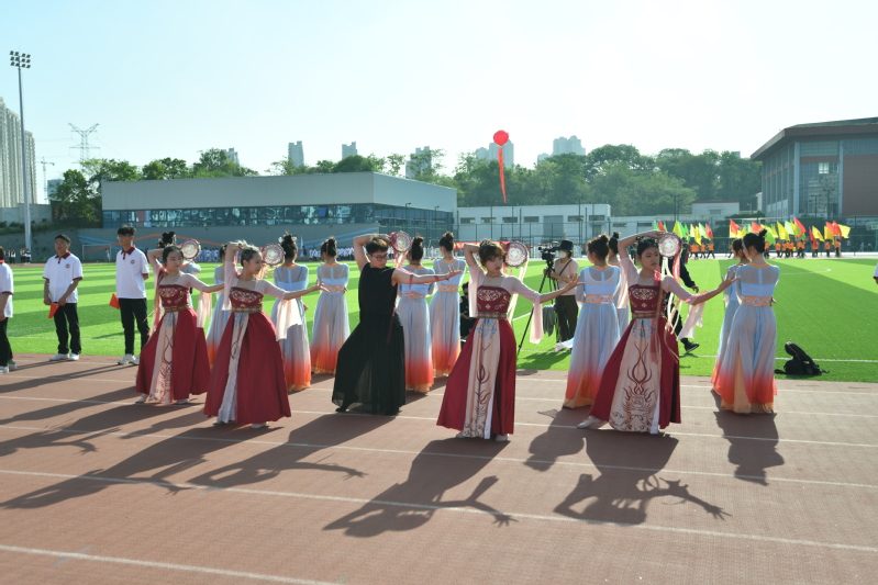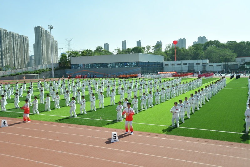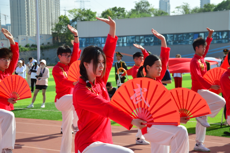王立新校长宣布本届运动会开幕。随后进行了别开生面的健身气功(八段锦)、排舞开场表演。健身气功表演浑圆凝重、松静自然,完美诠释深厚的中华传统体育文化底蕴;排舞演练同样绚丽曼妙,形意结合如清溪。表演充分展示了学校体育工作在传承中华传统优秀文化方面取得的优异成果。