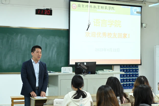 4月23日,借英语专业八级考试的契机,语言学院英语(师范)专业120余名毕业生返回母校,在博雅楼2514教室举行了一场校友师生座谈会。此次返校的主要是2020、2021、2022届校友,语言学院党总支书记丁祖保、副院长徐琴芳以及英语专业部分专任教师参加了此次座谈会,会议由徐琴芳副院长主持。