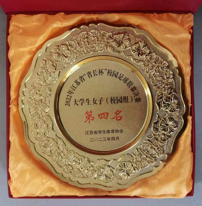 在2022年江苏省“省长杯”高校女子足球比赛中,我校女子足球队获得比赛第四名并荣获“体育道德风尚奖”。