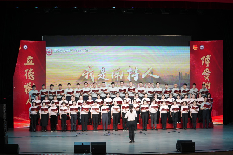 比赛在昂扬的校歌大合唱中拉开序幕。机关党委和10个二级学院共组成10支队伍,校领导积极参加联系学院的合唱比赛。各参赛队伍以必选曲目校歌《我是南特人》加自选曲目的形式展开角逐,悠扬的歌声、优美的旋律让在场观众沉浸其中,师生代表们用歌声唱出对青春的赞美,对母校的热爱,对祖国的祝福,展现了朝气蓬勃、激情澎湃、昂扬进取的新时代南特人风采。