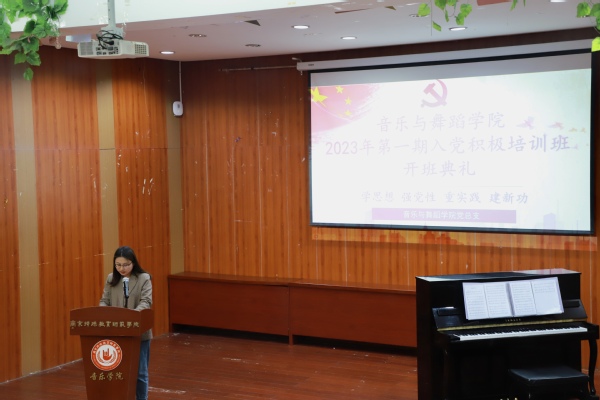 这堂“别开生面的党课”是南京特师音乐与舞蹈学院党总支举办的2023年入党积极分子培训班的开班仪式,这堂音乐党课拉开了学院首创以音乐形式开展党课的序幕,党课由学生第一党支部书记胡祖倩老师主持。