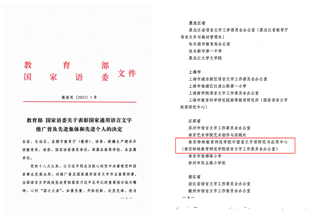 5月10日上午,国家通用语言文字推广普及工作表彰大会暨2023年国家语委全体委员会议在京召开。我校中国盲文手语研究与应用中心(语言文字工作委员会办公室)荣获“国家通用语言文字推广普及先进集体”称号。