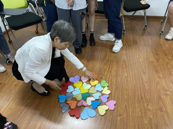 谈及此次情绪梳理和疗愈体验的心理运作机制,李媚老师说道,我们将内心需求投射到具体的意象,也就是“折纸心”这件物品上的时候,也就产生了“仪式感”和“信念感”;通过团体之间意象物品的交换与互动,能够从深层次引起情绪的流动,从而引导我们的情绪往积极的方向发展。放松环节之后,同学们不约而同觉得近期的一些负面情绪得到了纾解,效果非常神奇,大家感觉又能够活力满满地面对当下的学习和生活了。