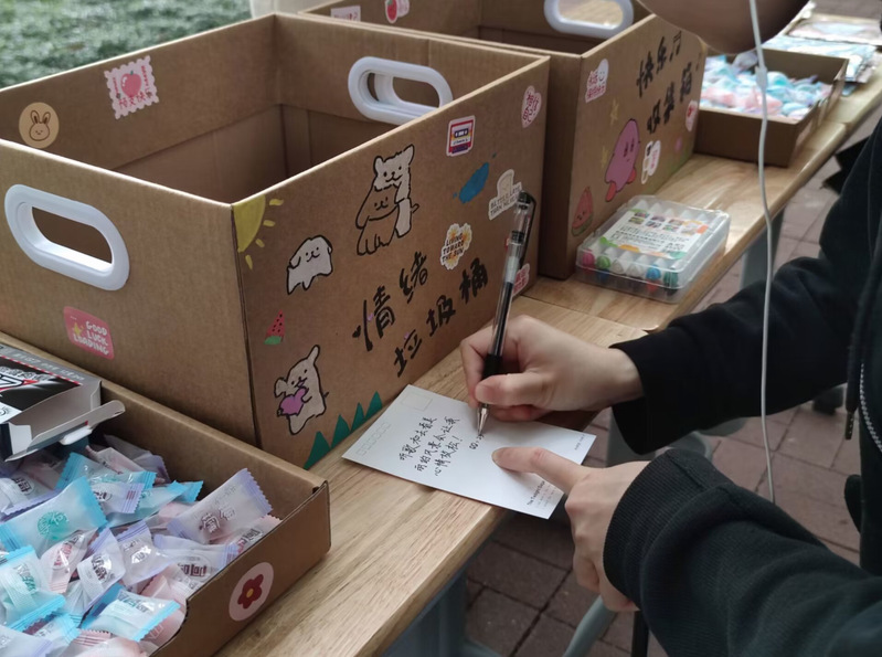 康复科学学院前期通过悦心社社团公众号“特师悦心社”进行预热宣传,在全校师生中引起广泛关注。活动当天,悦心社全体同学井然有序地进行现场布置,分设快乐收集箱和情绪垃圾桶两个通道,让同学们借助笔尖和文字抒发近期的小确幸和小烦恼,活动形式新颖、礼品精美,同学们热情高涨,现场气氛十分活跃。