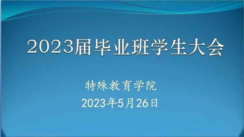 为进一步做好2023届毕业生各项工作,特殊教育学院日前召开2023届毕业生大会。特殊教育学院党总支书记叶亮、院长李拉出席会议,学工办(团总支)负责人、毕业班带班辅导员和2023届毕业生近四百人线上线下参加会议。会议由特殊教育学院党总支副书记李鹏主持。