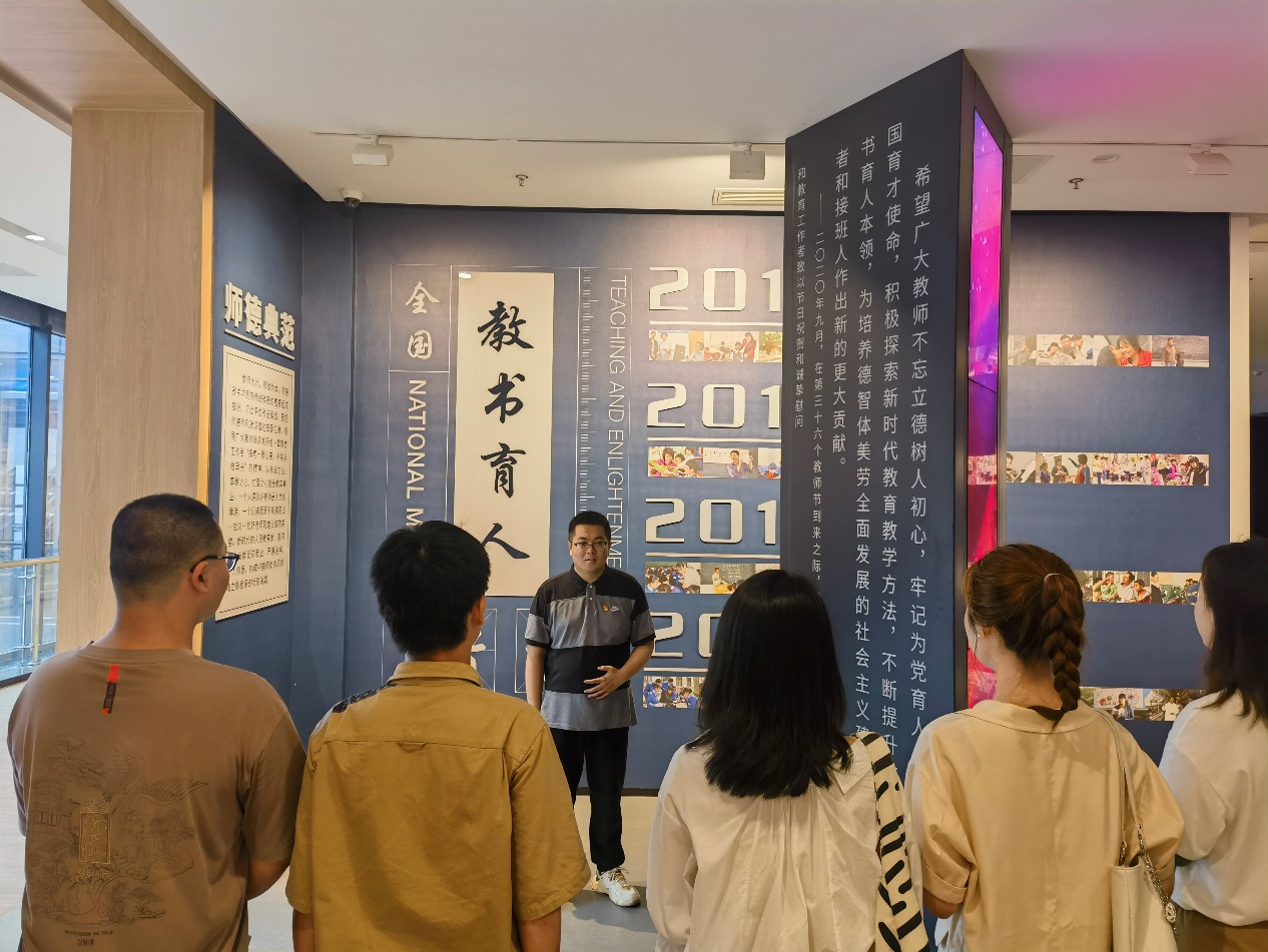 在行知园的师德教育馆内,全体师生怀着深深的敬意,参观了“理想信念”“道德情操”“扎实学识”“仁爱之心”四个主题厅。馆内呈现的大量珍贵史料、文物体现了陶行知先生的艰辛办学历程和毕生奉献教育事业的拳拳爱国心,让在场师生无不动容。大家通过对展览馆的参观,以及对其教育理念的深入了解,深刻体会到了陶行知先生“千教万教教人求真,千学万学学做真人”的教育理念,更进一步认识了陶行知的教育思想理念与实践所赋予的师德教育价值。
