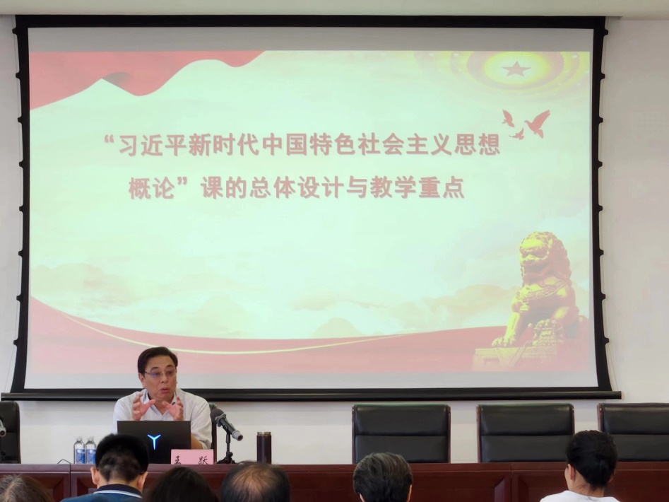 王跃教授全面系统解读了“习近平新时代中国特色社会主义思想概论”课程的总体设计与教学重点。他强调,教师在课程教学中,要体现党的已有总结和结论,体现第三个决议及党的二十大的最新内容,体现习近平新时代中国特色社会主义思想的鲜明特色,体现习近平新时代中国特色社会主义思想的“四梁八柱”,做到“九个讲清楚”,用这门课推动习近平新时代中国特色社会主义思想“三进”工作,充分发挥教师主导性,积极调动学生主动性。