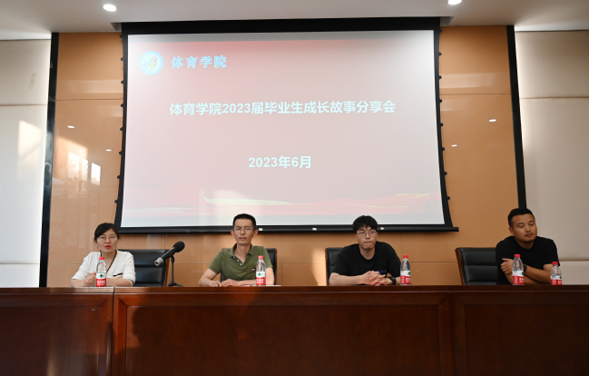 6月5日晚,体育学院举行“毕业生成长故事分享会”。学院直属党支部副书记谢军、体育系主任麻晨俊、学工办主任屈文文以及体育学院全体学生参加。分享会由该院2023届的7名毕业生和南京体育学院研究生、我校校友张博谦主讲。