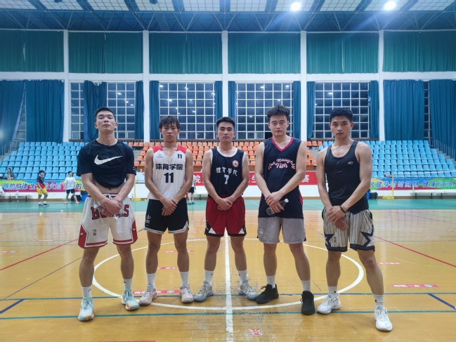 篮球赛分4场进行,随着裁判员的哨音,双方队员迅速进入比赛状态,场边观众席上的加油声、呐喊声此起彼伏,为队员们加油鼓劲。经过激烈角逐,由刘浩琦、王付君、方梓荣、李佳瑞、尚龙强组成的队伍获得冠军。