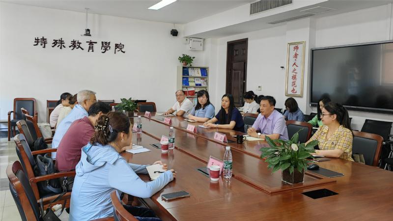 日前,北京联合大学特殊教育学院叶晓院长、钟经华主任等一行五人到我校特殊教育学院进行融合教育相关交流调研。特殊教育学院李拉院长、冯超博士、费毛毛博士、郑杜甫博士、薛辉博士及多位年轻老师出席会谈。此次交流活动旨在通过双方的经验交流分享,促进高等融合教育事业的研究与发展。