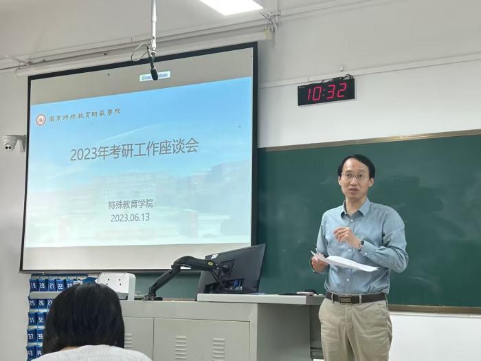 为帮助同学们了解考研信息及相关流程,树立考研必胜的信心,特殊教育学院于6月13日上午在博雅楼2407举办2023年考研工作座谈会。特殊教育学院党总支书记叶亮和副书记李鹏、大三和大四年级带班辅导员、19级成功考研同学代表以及20级准备考研同学代表参加座谈会。会议由学院党总支副书记李鹏主持。
