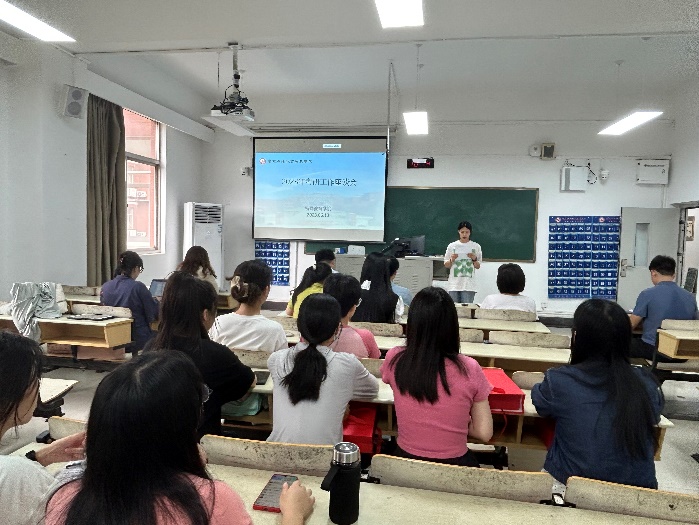 两位顺利考研的同学上台分享了他们的备考历程和考研体会。王子妃同学详细讲述了在备考过程中遇到的困难以及相应的解决方法,从“真题”“笔记”等问题具体入手,叮嘱同学们要仔细研究真题题型,揣摩命题动机。同时,她也感谢学院在其考研期间提供的帮助与指导。蔡戴蓉同学强调了利用碎片化时间的重要性,建议在练习中要重质量,及时总结,少看别人、多看自己,保持良好的备考状态。经验分享之后,现场进行了比较深入的交流和讨论。
