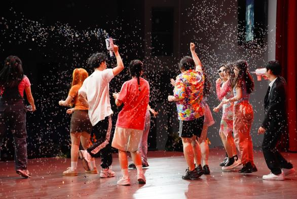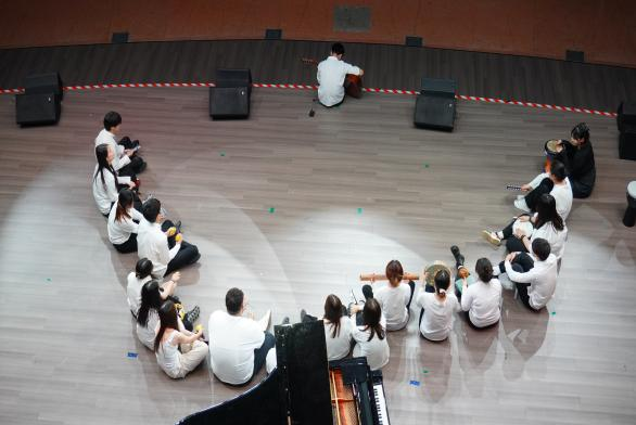 音舞2106班带来声势律动作品,演奏中使用音条琴、鼓、音筒、沙锤、碰铃、手摇铃、吉他、钢琴等乐器并加入身体律动,展现出音乐治疗的风采和活力。