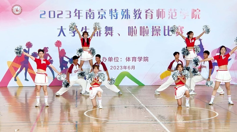 日前,我校2023年大学生排舞、啦啦操比赛在校体育馆顺利举行。