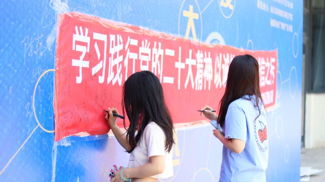 为深入全面贯彻党的二十大精神,扎实推进社会主义核心价值观教育,营造诚实守信的浓厚氛围,同时,为进一步促进学风建设,加强考纪教育,杜绝考试违纪,创建文明、公平、公正的考试风气,美术与设计学院于6月13日在博爱美术馆门口开展“学习践行党的二十大精神,以诚信之风,立诚信之行”主题活动。