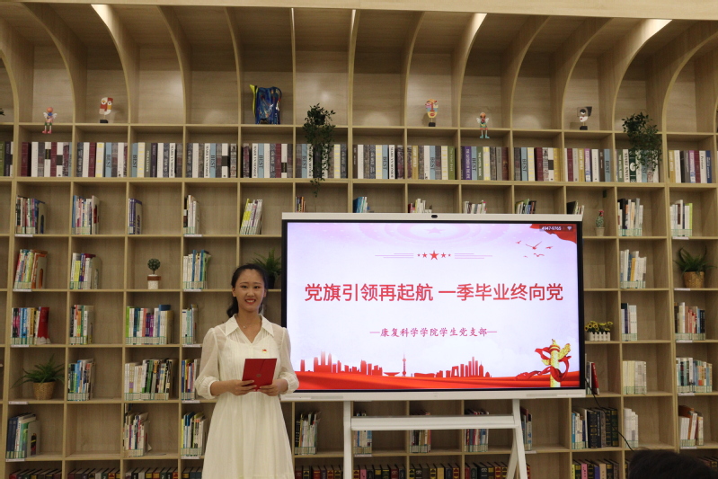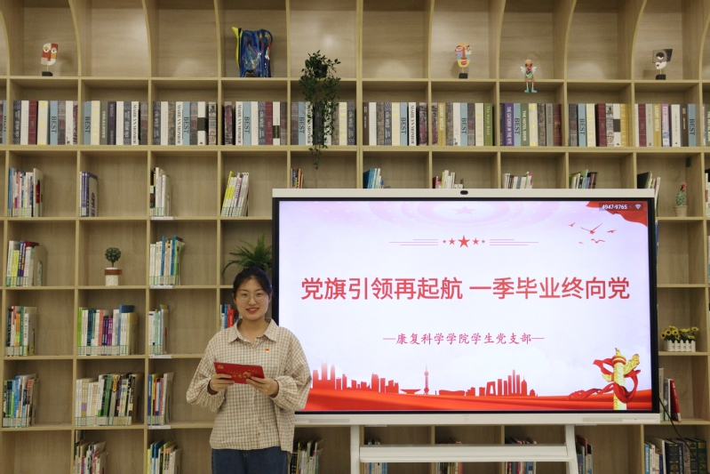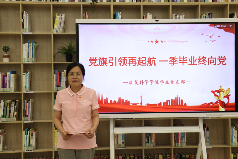 为加强学生思想价值引领,落实立德树人根本任务,引导毕业生党员忆初心、固担当,新发展党员增信念、强使命,日前,康复科学学院学生党支部开展“党旗引领再起航,一季毕业终向党”主题党日活动。本次活动由康复科学学院毕业生党员陈琦主持,学院党总支书记吴洪菊、学工办主任(团总支书记)王雪梅、毕业班辅导员王国庆、毕业生党员、大三部分党员代表参加。