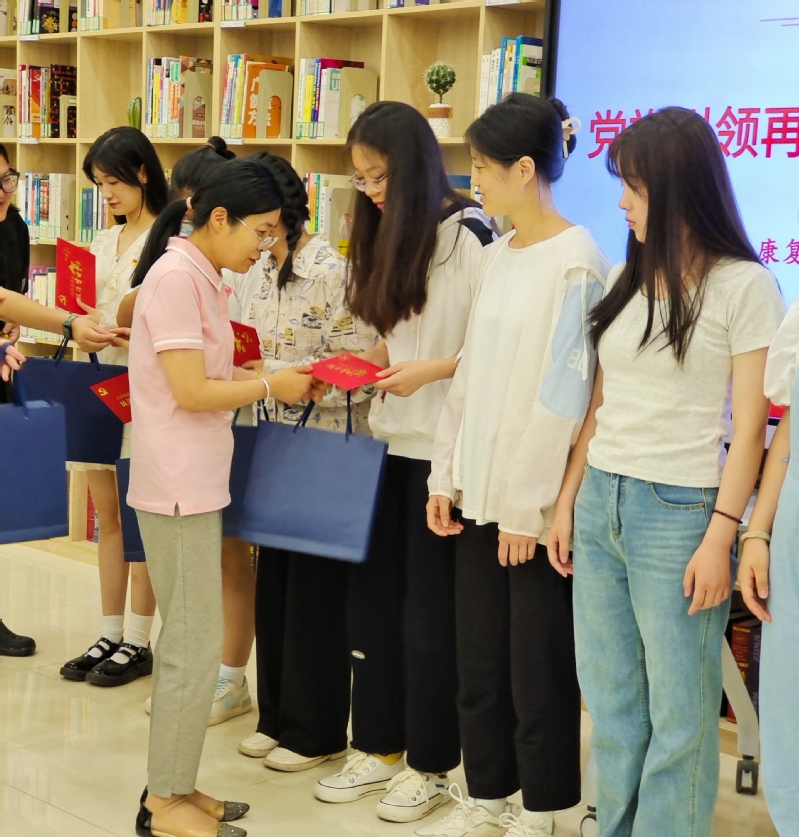 唐晓慧和毛天琦代表毕业生党员发言,杨莹璐代表新发展党员发言,她们都表示会牢记恩师们的谆谆教诲,在学思践悟中坚定理想信念,在奋发有为中践行初心使命。