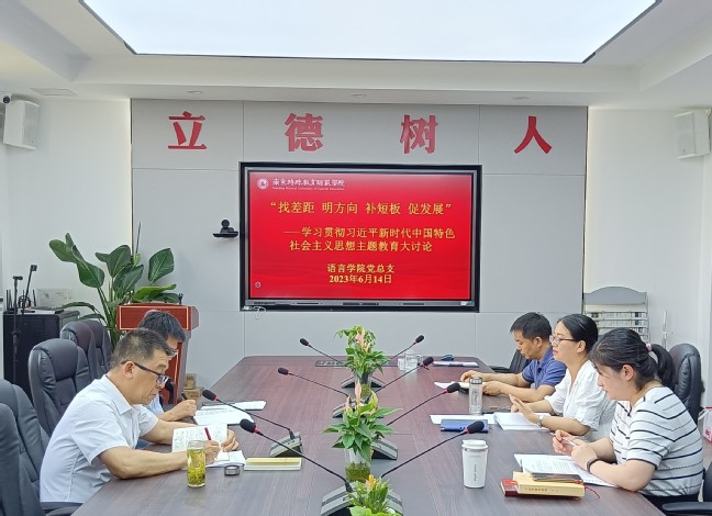 6月14日下午,语言学院党总支以“找差距 明方向 补短板 促发展”为主题,开展学习贯彻习近平新时代中国特色社会主义思想主题教育大讨论。学院党总支书记丁祖保主持并讲话,校党委常委、党委宣传部部长朱正东及校巡学旁听组成员到会指导。