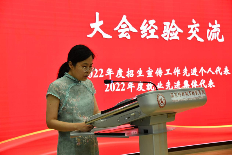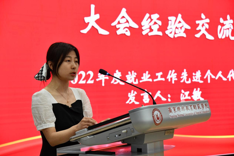 作为招生宣传工作先进个人和就业先进集体代表,康复科学学院党总支书记吴洪菊介绍了南通片区抓牢生源中学提升宣传实效的具体做法,分享了在就业工作中的经验和思考。教育科学学院江敏代表就业工作先进个人,从积极学习贯彻国家就业政策、加强分类指导精准施策、以学生为中心助力学生成才之路三个方面分享了她对就业工作的心得体会。