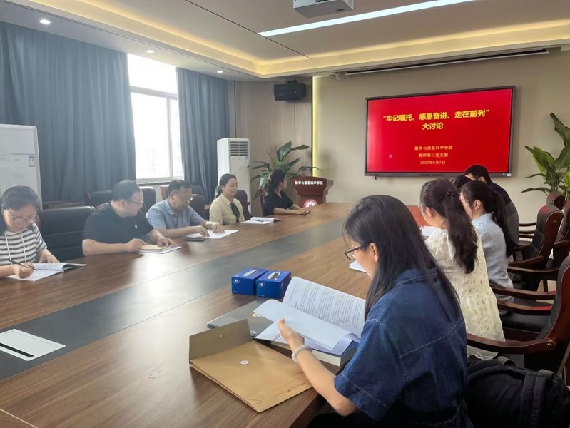 近日,数学与信息科学学院教师第三党支部开展了“牢记嘱托、感恩奋进、走在前列”大讨论。会议由数学与信息科学学院教师第三党支部书记王立平主持。