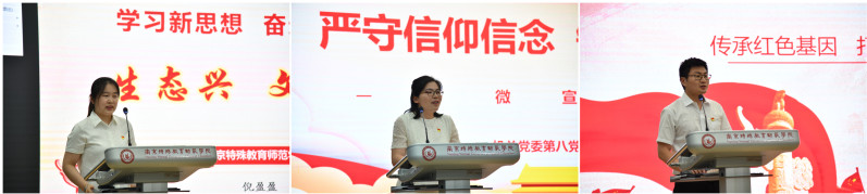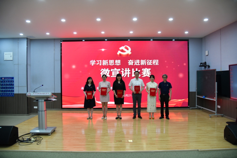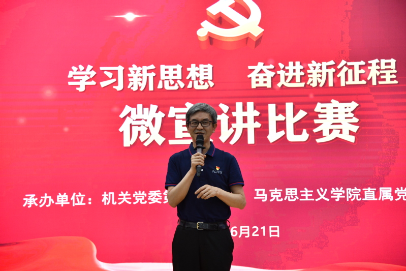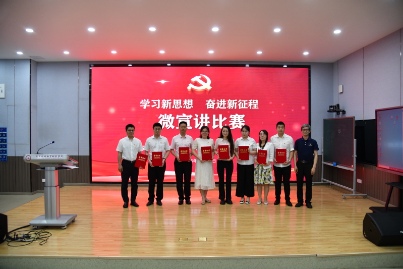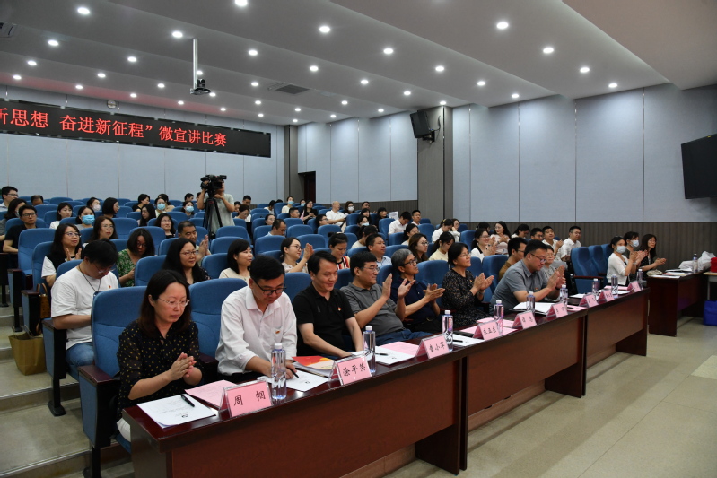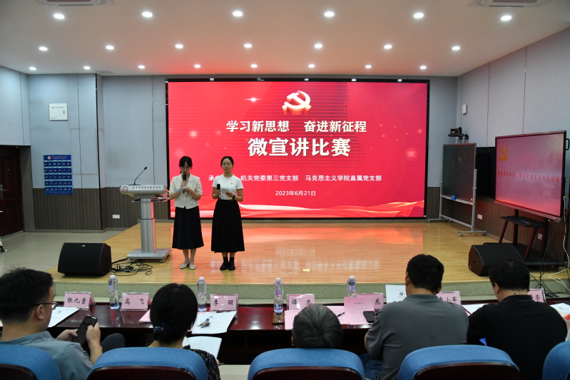 6月21日下午,机关党委在博远楼106举办“学习新思想 奋进新征程”微宣讲比赛。校党委常委、党委副书记谭忠出席活动并讲话。党委常委、党委组织部部长李丽,党委常委、党委宣传部部长朱正东,党委常委、党委统战部部长、学生工作处处长高飞,马克思主义学院主持工作副院长张九童,校习近平新时代中国特色社会主义思想研究中心主任、马克思主义学院教授涂平荣,马克思主义学院习近平新时代中国特色社会主义思想概论教研室主任、教授沈卫,马克思主义学院习近平新时代中国特色社会主义思想概论教研室副教授周帼8位老师担任评委。比赛由机关党委第三党支部和马克思主义学院直属党支部承办。机关党委和马克思主义学院全体党员老师到场观摩学习。