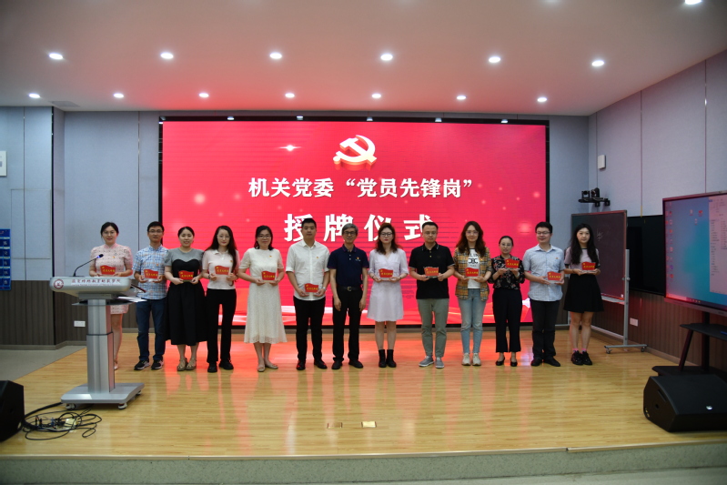 比赛期间举行了机关党委“党员先锋岗”授牌仪式,机关党委书记章小军宣读《关于设立机关“党员先锋岗”的决定》。校党委副书记谭忠为机关各支部“党员先锋岗”代表授牌。