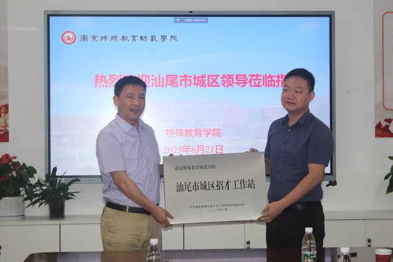 为进一步加强校地合作,满足地方教育发展人才需求,促进学生高质量就业,6月21日上午,特殊教育学院与广东汕尾市城区在博雅楼2401会议室举办校地合作交流会。汕尾市城区组织部副部长余尚樾、区人社局副局长林小青、汕尾市城区教育局党组成员谢国辉、汕尾市特殊教育学校校长钟仁该一行6人出席合作交流会。特殊教育学院、学工处、康复科学学院相关负责人,辅导员代表及部分广东籍学生参加本次交流活动。合作交流会由特殊教育学院党总支副书记李鹏主持。