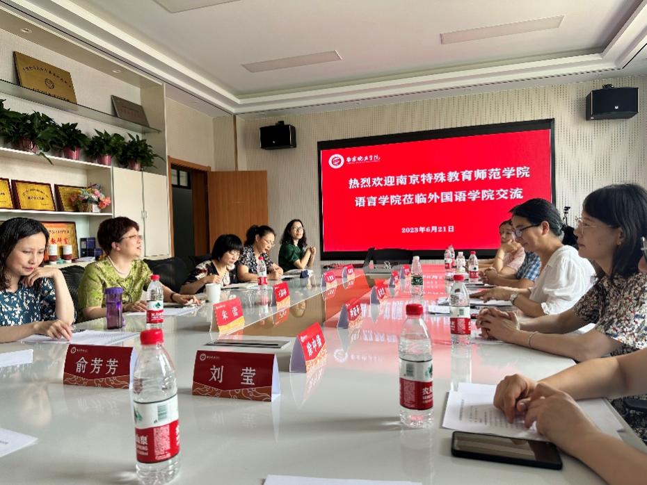 为进一步推进主题教育,深入开展调查研究,6月21日下午,语言学院副院长英语专业负责人徐琴芳、语言学院副院长刘海军、语言学院英语系主任赵冬华及英语系骨干教师一行8人来到南京晓庄学院外国语学院调研学习。此次调研得到了外国语学院王静萍院长、汪璧辉副院长的热情接待,南京晓庄学院英语师范专业负责人朱蕾和小学教育专业负责人徐冻梅参加本次交流。