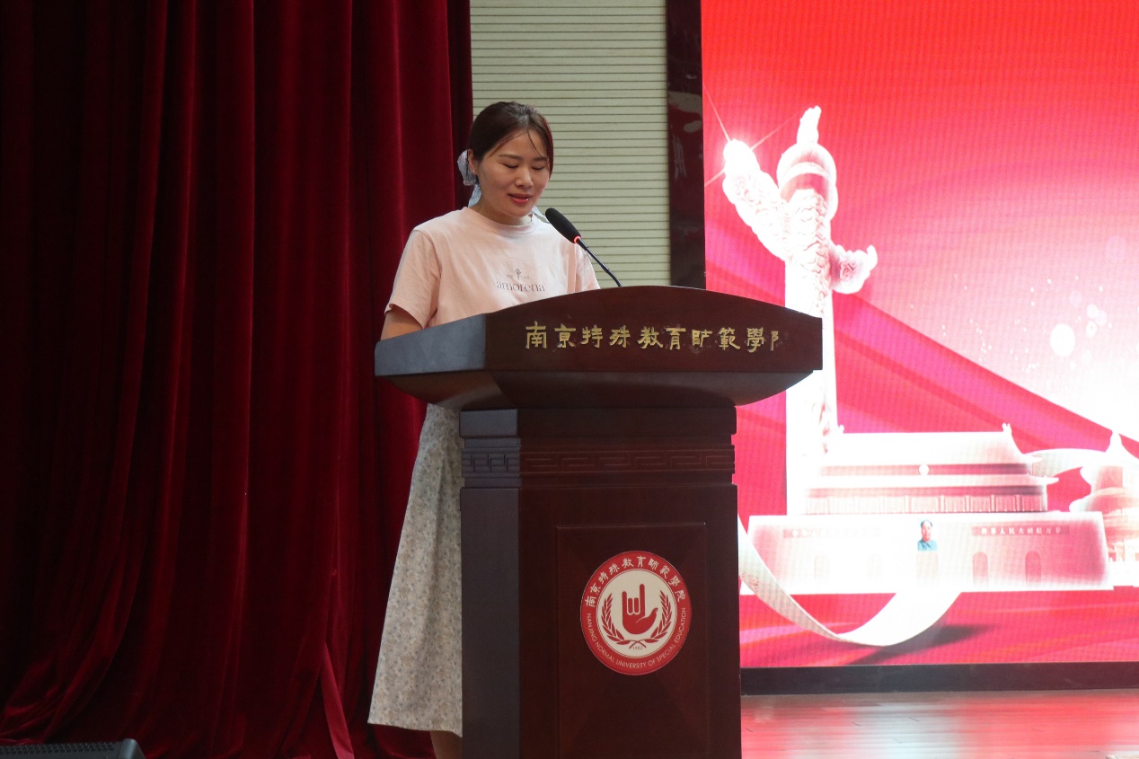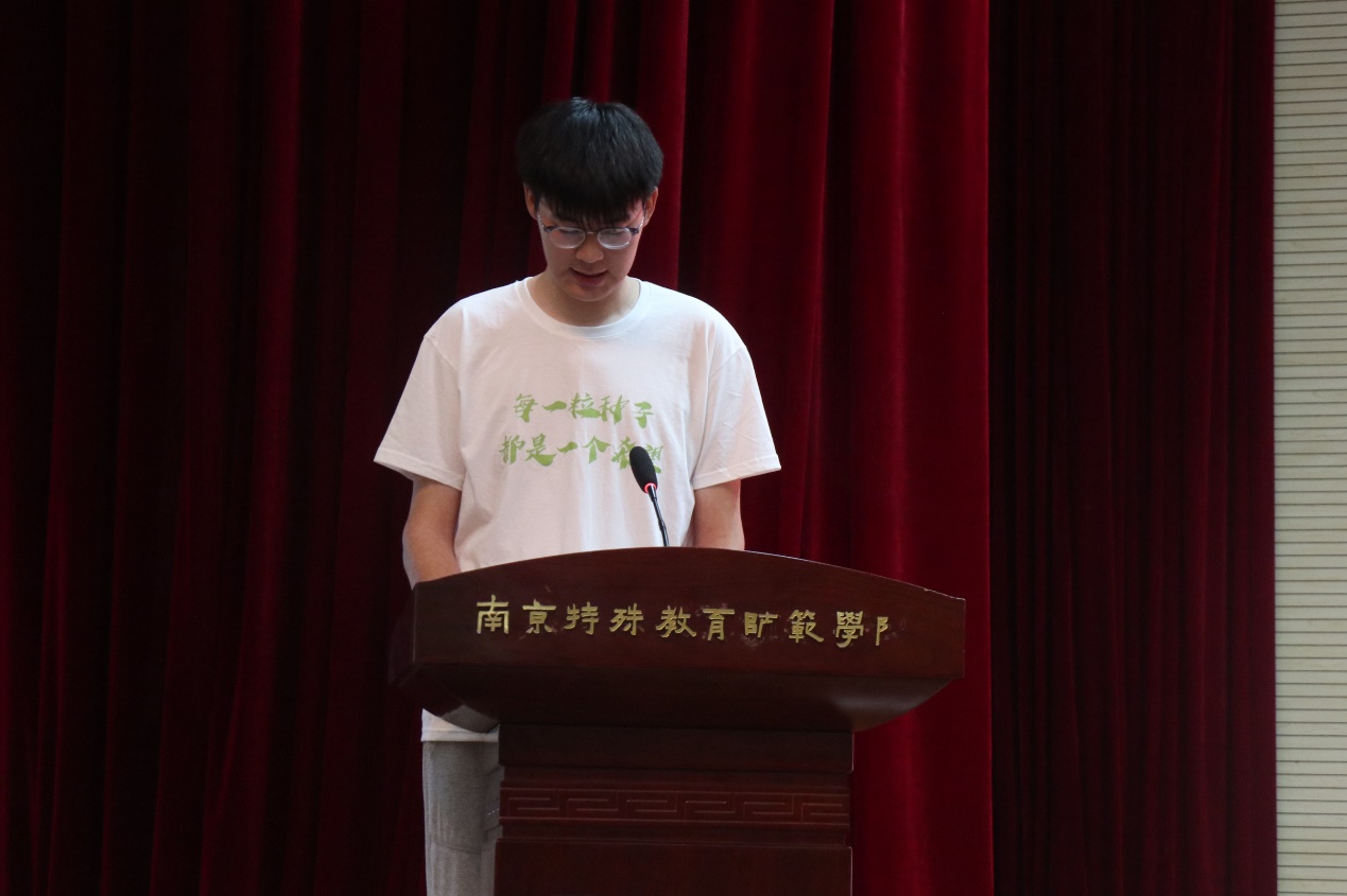 语言学院21级本科生戴永鑫同学代表全体实践团队发言,并做出承诺,严格按照要求,扎实开展活动,活动中牢固树立安全意识,团结协作,展现南特学子风采。