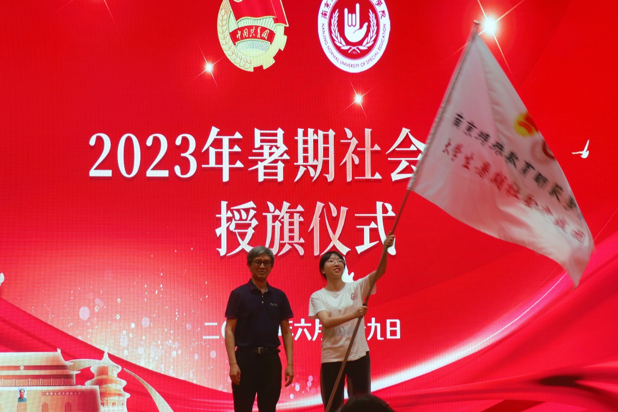校党委常委、副书记谭忠老师为2023年“大学生暑期实践团”授总旗