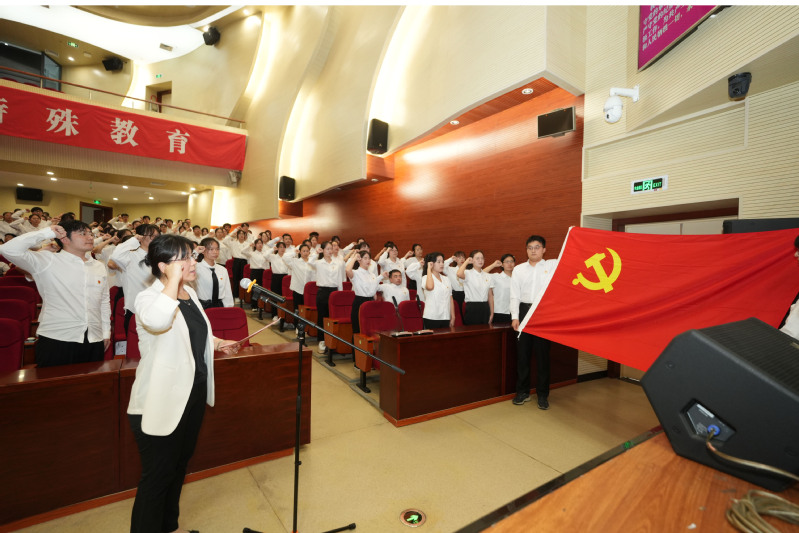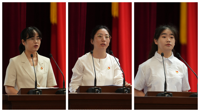 优秀共产党员代表曾红艳、先进基层党组织代表王雪梅和新党员代表赵佳辉分别作了交流发言。全体新党员在校党委常委、党委组织部部长李丽的带领下进行了庄严的入党宣誓。