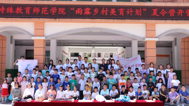 为进一步推广美育教育,通过美术教育活动提升欠发达地区留守儿童心理健康,加强乡村儿童对家乡的认同感,促进乡村振兴,7月8日上午,美术与设计学院“雨露乡村美育计划”暑期支教团队在陕西省商洛市板岩镇中心小学的夏令营和色河辅镇九年制学校的夏令营开营仪式顺利举行。陕西省商洛市板岩镇中心小学校长雷家江、副校长杨宪清,陕西省商洛市色河九年制学校校长程周锋,副校长卢锋、团委书记黄茗鹏,美术与设计学院团总支副书记林敏,“雨露美育乡村夏令营”全体志愿者,学生及部分家长共同参与了开营仪式。