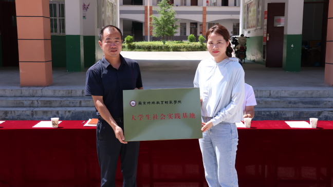在开营仪式上,我校与陕西省商洛市板岩镇中心小学和陕西省商洛市色河辅镇九年制学校分别签订“南京特殊教育师范学院大学生社会实践基地”协议并分别进行了授牌仪式。今后,板岩镇中心小学和色河辅镇九年制学校都作为南京特殊教育师范学院的实践基地,将为南京特师的学子们提供实践平台,南京特师的学子们也将发挥专业特长,为板岩镇中心小学和色河辅镇九年制学校提供特殊教育及美术教育等方面的专业支持。