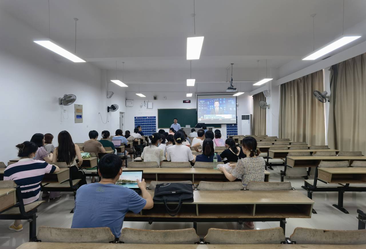 7月9日下午,语言学院召开全体教职工大会,认真学习习近平总书记考察江苏时的重要讲话精神和习近平总书记给南京审计大学审计专业硕士国际班留学生的回信,与会教职工结合学习内容进行深入交流。会议由学院党总支书记丁祖保主持。