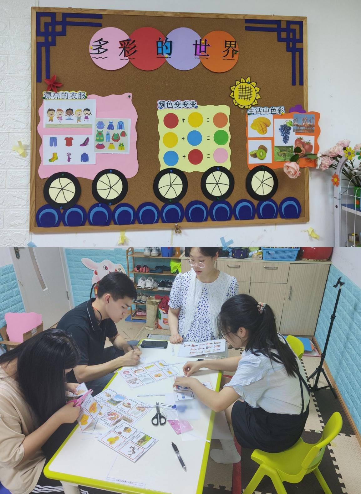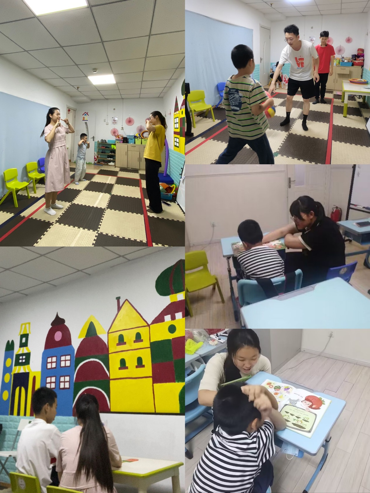 “守望星星”暑期社会实践团队带着满满的爱心和火热的激情于2023年6月28日走进南京市建邺区磨方城儿童潜能发展中心,开展了10多天的志愿服务和专业实践活动,为特殊儿童(主要面向自闭症儿童)带去无私的关怀与专业支持。南京磨方城儿童潜能发展中心是一所主要为2-14岁孤独症(自闭症)、语言发育迟缓、注意力不集中、学习障碍、运动障碍等儿童提供专业服务和技术指导的康复机构。“守望星星”团队一方面为这些来自星星的孩子们提供授课教学服务,另一方面也帮助机构的老师完成教具制作、环境创设等日常教学辅助性工作。